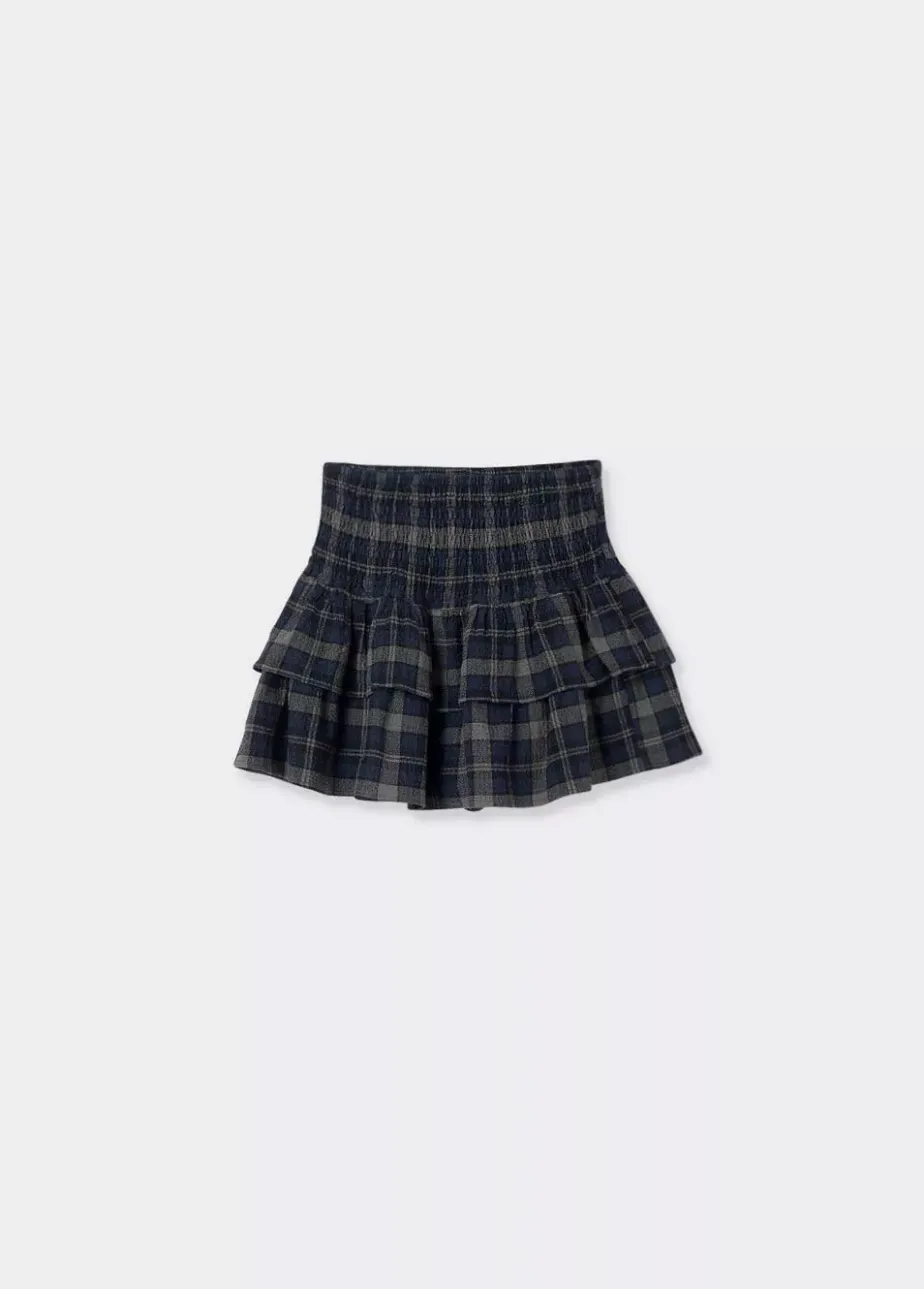 Falda Corta De Cuadros Con Volantes Y Smock En La Cintura.Composicion: