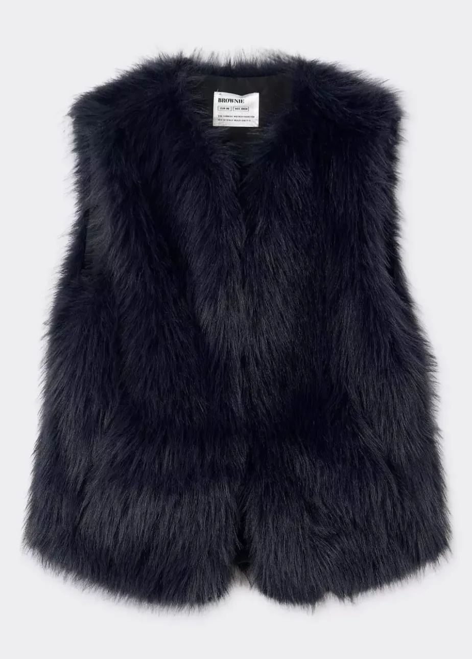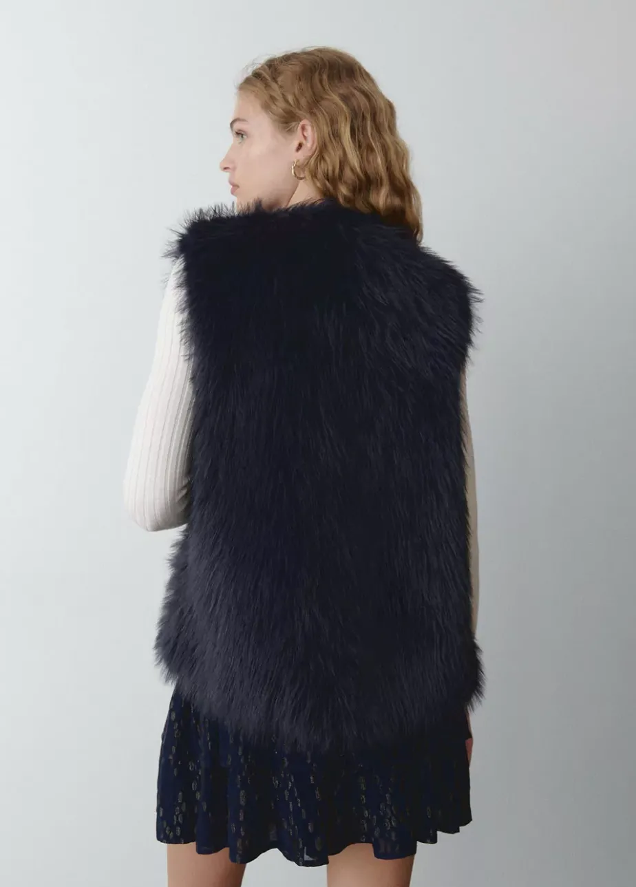 Chaleco De Pelo Sintetico Sin Mangas Y Cuello Redondo.
